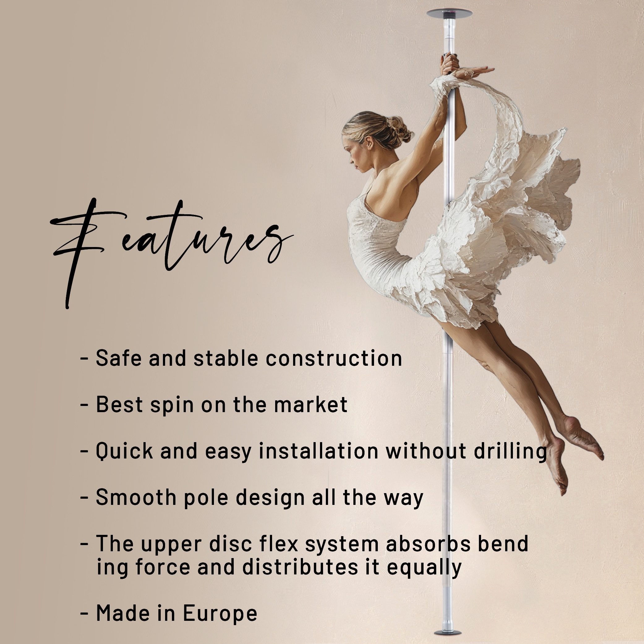 Jis skirtas greitam montavimui be gręžimo. Aukštos kokybės gumos paviršius, unikalus viršutinio disko lankstumo sistema ir patentuota saugos blokavimo briauna užtikrina maksimalų šokėjo saugumą.