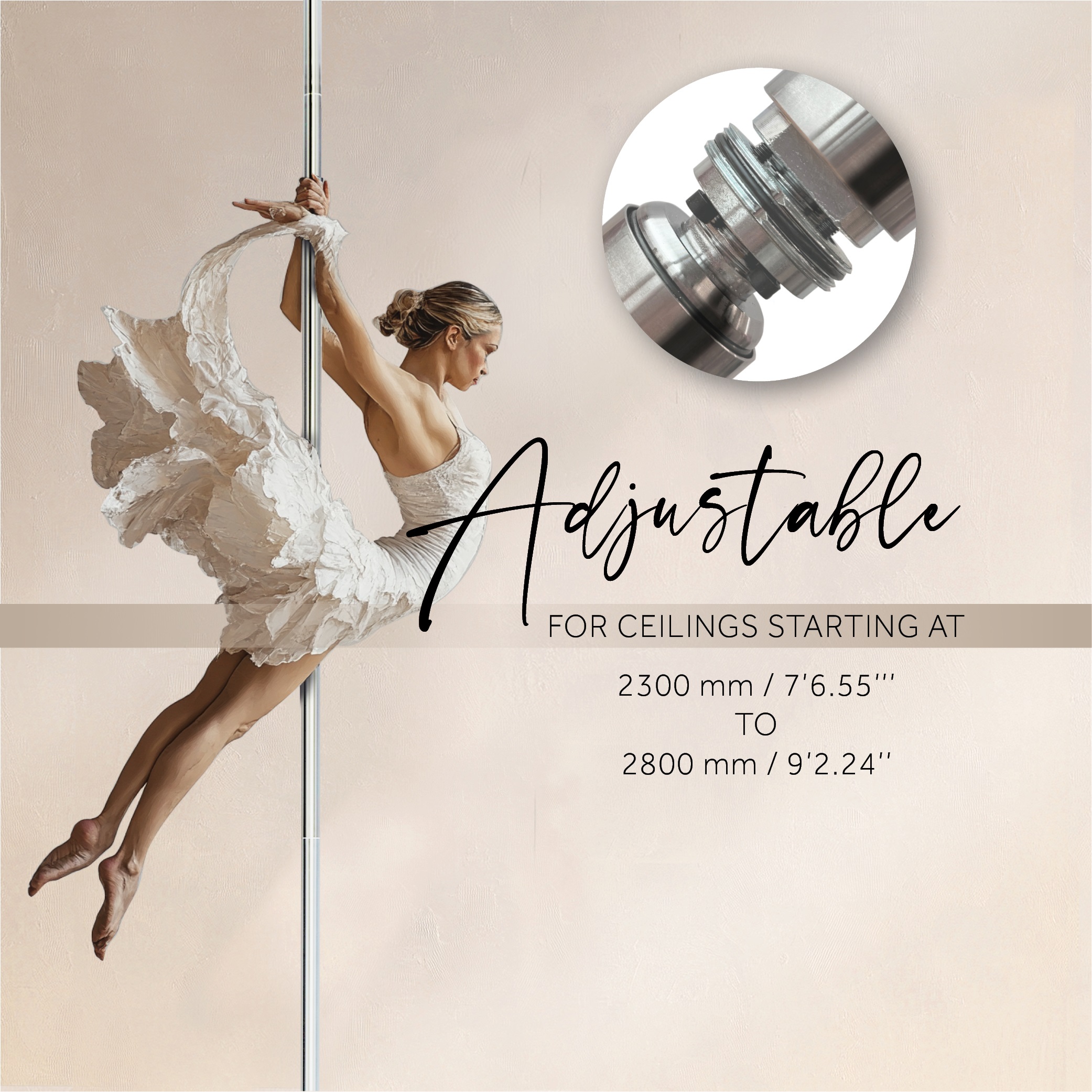 Luboms aukštesnėms nei 2800 mm pažiūrėkite mūsų pratęsimą susijusiuose produktuose ir išplėskite savo polį iki 3300 mm.