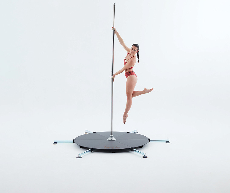 The Lupit Pole Stage with long legs is designed to withstand more demanding choreography elements and gives the stage additional stability.