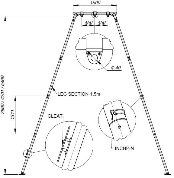 four adjustable height settings to match any training need: 2.9m, 4.2m, 5.5m, 6.6m